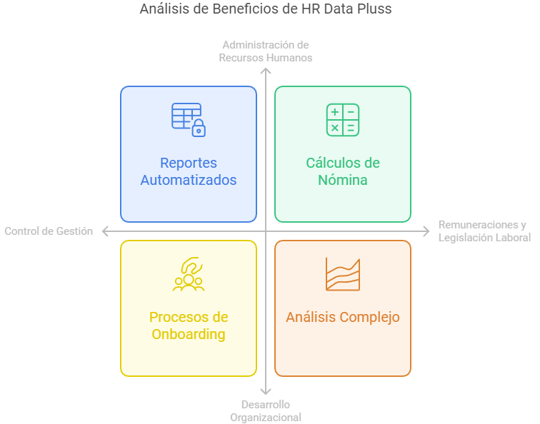 HR Data Pluss es un conjunto completo de herramientas diseñadas para optimizar la gestión del capital humano en tu organización. Desde cálculos complejos hasta la automatización de tareas diarias, estas utilidades están integradas en Excel para ofrecer soluciones rápidas y precisas, adaptándose a las normativas locales y a las necesidades específicas de Recursos Humanos. Descubre a continuación las principales funcionalidades que HR Data Pluss pone a tu disposición: